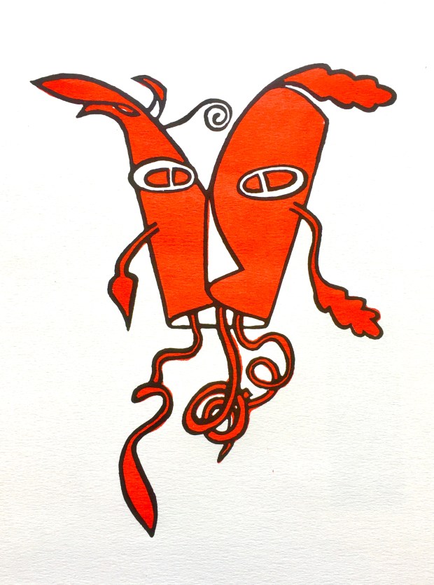 The two print layers are now completed. I initially tried to produce a ‘clean’ print with no evidence of the cutting being shown. However, having made some mistakes at the inking stage, thus showing some of the cut lines, I decided to intentionally include them in the final print. As seen in the pictures, they add a certain, appropriate ‘feel’ to the final image, seemingly more organic. I am happy with the framed print.