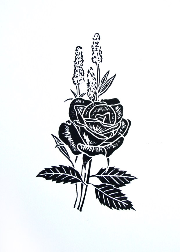 To celebrate the first birthday of a very special little girl (my first grand daughter) I created this print. It is from an original, observational drawing I made of a rose, planted in our garden shortly before Rosie was born.