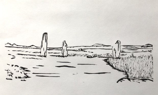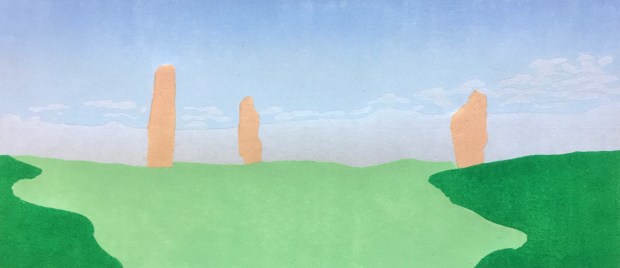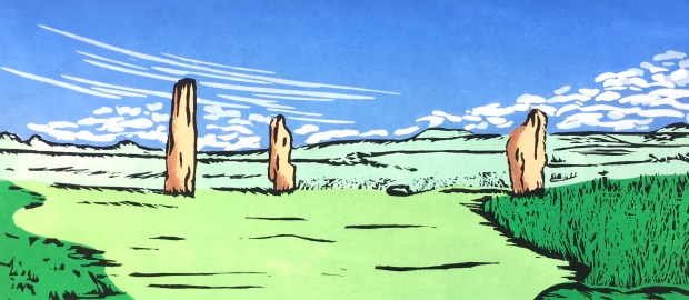 The Machrie Moor Standing Stones on the Isle of Arran, are some of the most beautifully placed stones I have ever seen. They are at one with the landscape, their shapes echoing the surrounding hills perfectly. I have wanted to represent them in print for some time.